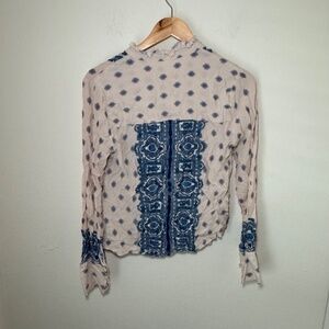 Free People Blouse Women's LG Blush Blue Multi Wishing Well Print Blouse Boho