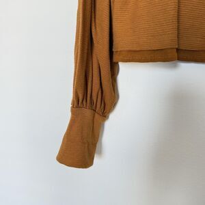 Free People Blouse Womens Medium Brown Long Sleeve Pleated Balloon Cuff Pullover Top