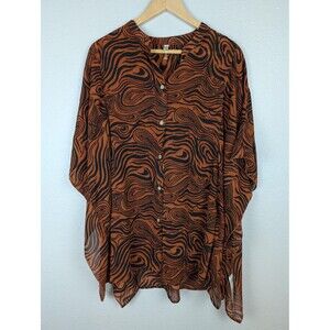 Free People Blouse Womens Small Brown Black Sheer Button Front Animal Print Boho Top