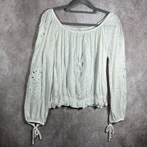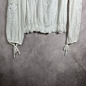 Free People Blouse Womens Small White Embroidered Cut Out Long Sleeve Ruffle Hem