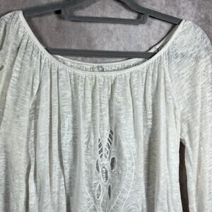 Free People Blouse Womens Small White Embroidered Cut Out Long Sleeve Ruffle Hem Boho Festival