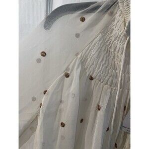 Free People Blouse Womens XS Ready to Run Embroidered Dot Smocked Georgette Top