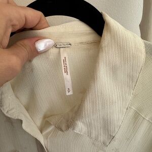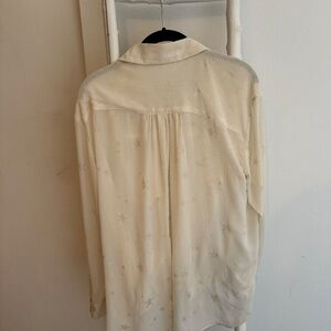 Super pretty and flowy Free People blouse in size small. Cream with gold stars and buttons, and then a tie on the bottom.