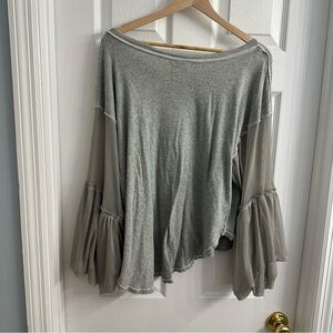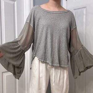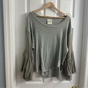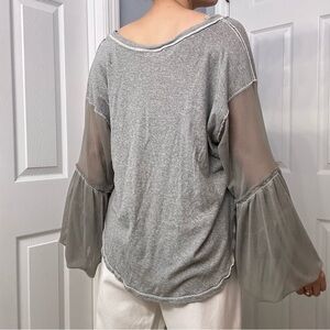 Free People BlouseFlare Sleeve Mesh Cut Out Gray Boho Lagenlook Size Extra Small