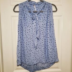Free People Blue Abstract Floral Print Tie Front Blouse Size Medium