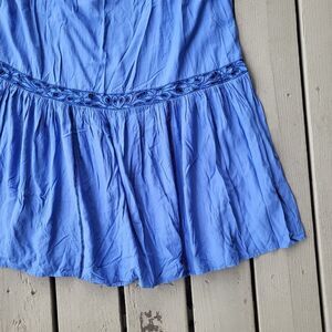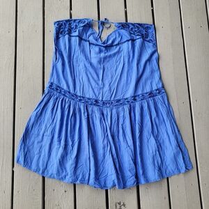 Free People Blue Ayu Oversized Open Back Floral Laser Cut Oversized Mini Dress S