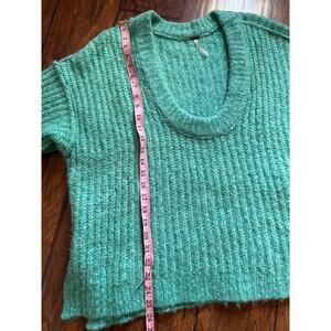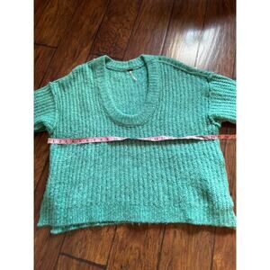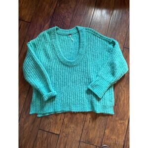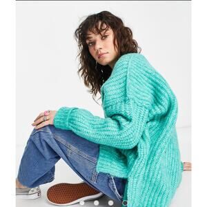Free People Blue Bell V Neck Chunky Sweater Electric Teal Blue