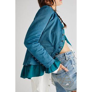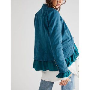 Free People Blue Blazer with Relaxed Fit and Ruffle Details Brand new w/tags