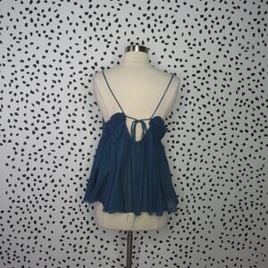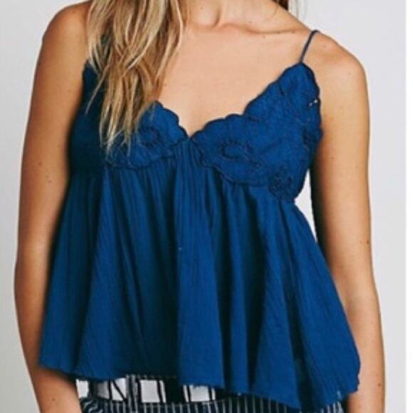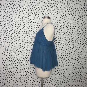 Free People Blue Boho Embroidered Strappy Cutwork Swing Tank