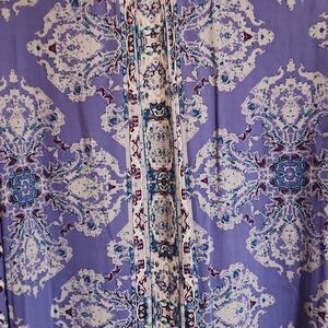 Free People Blue Boho Print Tunic Top w/ Flowy Sleeves & Buttons Size M