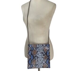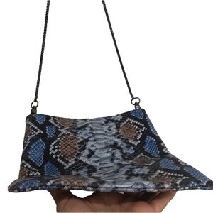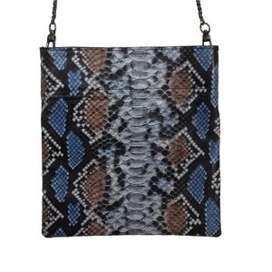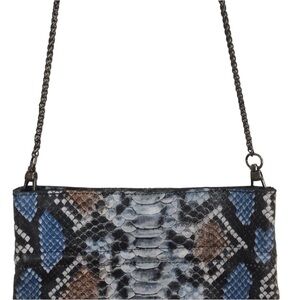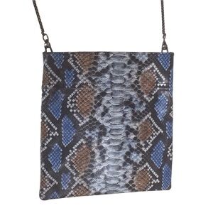 Free People Blue & Brown Snakeskin Pattern Chain Strap Crossbody Purse N…