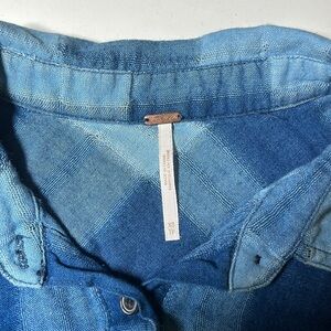 Free People Blue Button Up Long Sleeve Flannel 100% Cotton Sz XS A