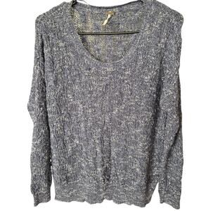 Free People Blue Cable Knit Boat Neck Pullover Sweater, XS