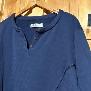 Free People Blue Crew Neck Henley Pullover Knit Sweater