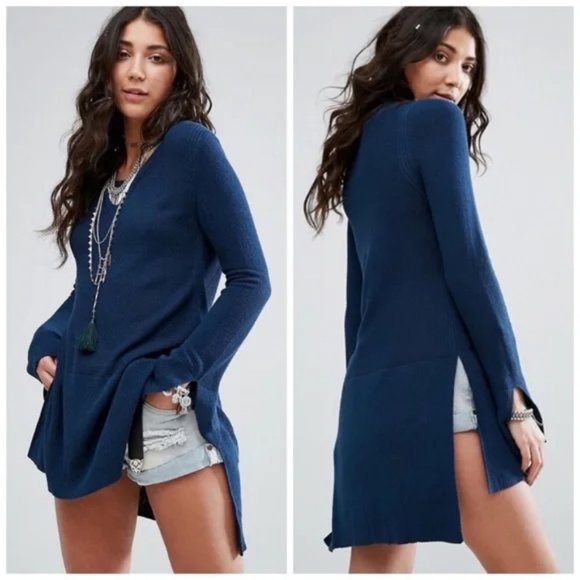 Free People Blue Criss Cross Tunic Sweater Size XS EUC