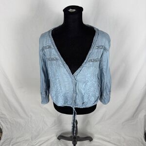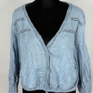 Stylish blue crop top. Features delicate lace details. Perfect for casual wear.