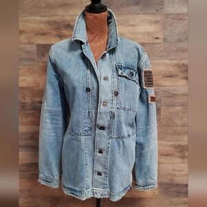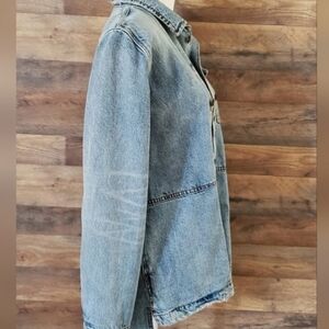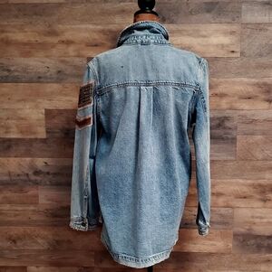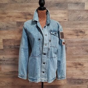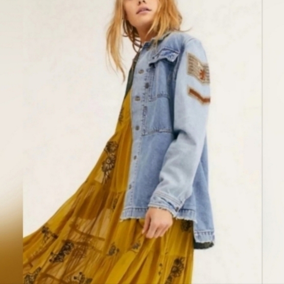 Free People Blue Denim Jacket with Embroidery Small