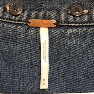 Free People Blue Denim Jacket with Knit Sleeves Mixed Media Sz M (O1)