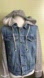 Free People Blue Denim Knit sleeves & hoodie button down Jacket - size medium