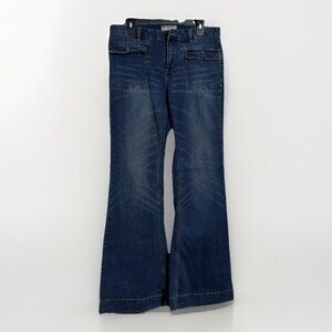 Free People Blue Denim Low Rise Wide Leg Bell Bottom Jeans Sz 29 Y2K
