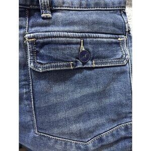 Crafted from a soft, stretchy blend of cotton, rayon, polyester, and spandex, they provide all-day comfort with a flattering fit. The dark wash denim and embroidered details add a stylish, feminine touch, while the classic 5-pocket design keeps them functional for everyday wear.
