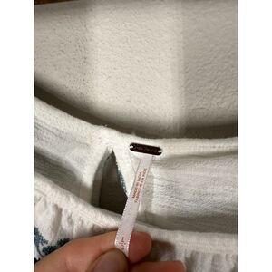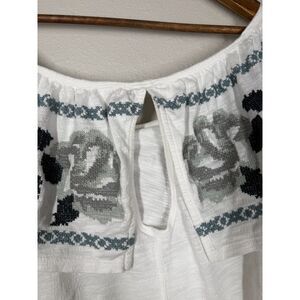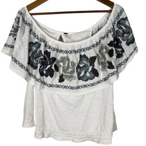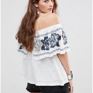 Free People Blue Embroidered Floral Top Womens Sz L Off Shoulder Boho Festival