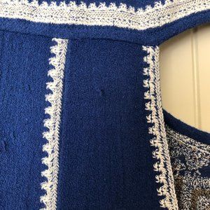 Beautiful embroidered blue tunic with beads from Free People. Size medium. Worn approximately 5 times as a beach cover-up or with a tank top under and white jeans.