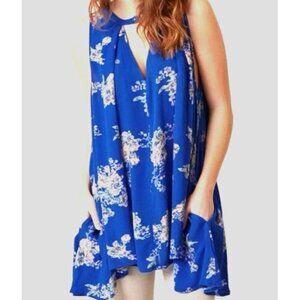Free People Blue Floral Mini Trapeze Swing S Boho Cottagecore Festival Indie SEE