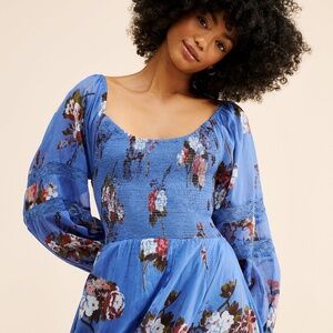 Free People Blue Floral Morning Glory Smocked Maxi Dress