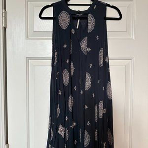 Free People Blue Geometric Pattern Sleeveless Pockets Hippie Tunic Dress