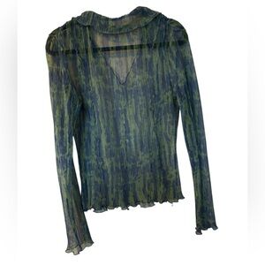 Free People Blue Green Sheer Mesh Long Sleeve Top with Collar Size Large
