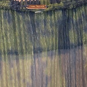 Free People Navy Blue Dark Green Sheer Mesh Long Sleeve Top with Collar Size Large - No Size tag but fits me as a L/XL - has stretch - could go for a medium as well