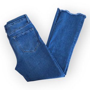Free People Blue High Rise Raw Hem Straight Leg Jeans 30