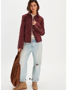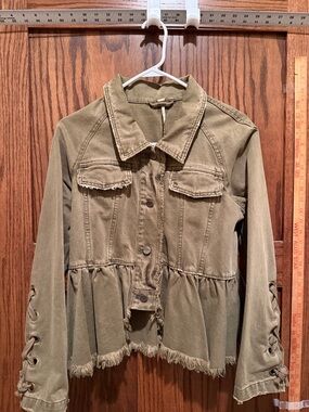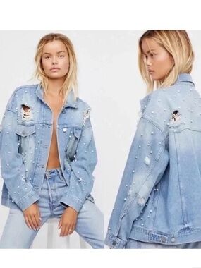 Free People Blue Hood Distressed Denim Jean Jacket. Size: XS/P