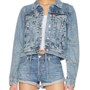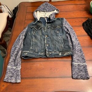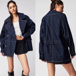 Free People Blue Jean Jacket with Lela Rose Silk Scarf
