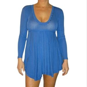 Free People Blue Long Sleeve Mini Dress Hi Low Size X Small