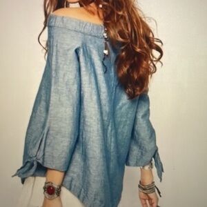 Free People Blue Off-Shoulder Blouse