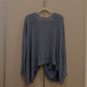 ○ Blue, open back, sweater, frayed hemline (made this way).