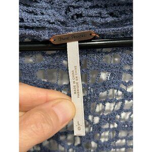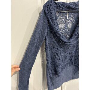 Free People Blue Open Knit Sweater With Cowl Neck Long Sleeves Sz L Boho Beachy