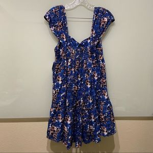 Free People; Blue Pattern Play Linen Floral ;Ruffle Mini Dress; Size Small,.