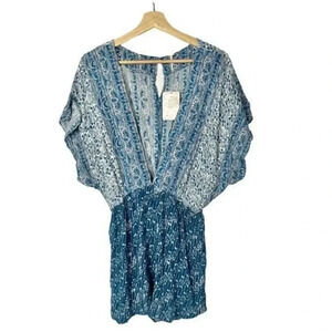 Free People Blue Printed Arizona Short Sleeve Romper S