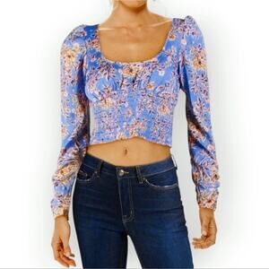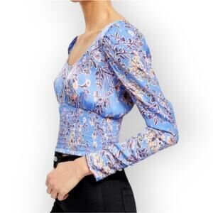 Free People Blue Santiago Boho Spring Floral Top Medium