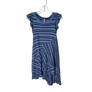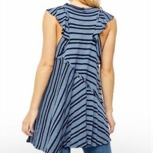 Free People Blue Striped Tunic Dress Between the Lines XS. Free People's effortless Between the Lines tunic is designed with a striped, spliced finish and ruffled armholes framing its long silhouette.