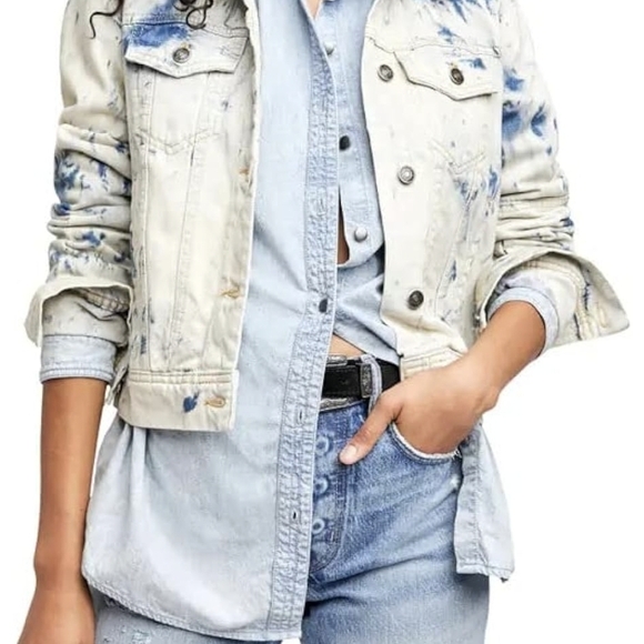 Free People Blue Tie-Dye Jean Jacket