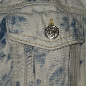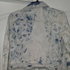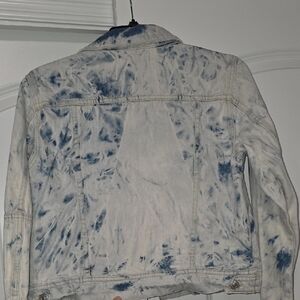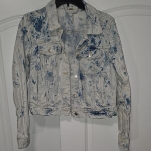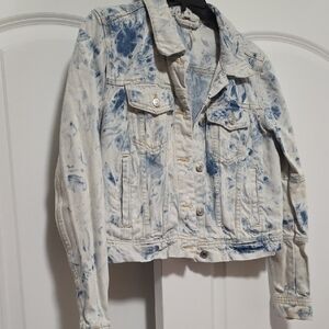 Trendy tie-dye jean jacket. Button front and chest pockets. Perfect for casual wear.