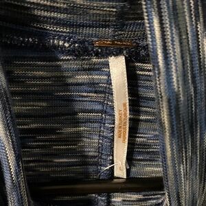 Free People Sunshine Space Dye Elbow Sleeves Turtleneck Top Color: Blue Size large Materials: 98% Cotton, 2% Spandex Imported Pull On closure Hand Wash Only MSRP - $58.00 / Blouse Vibrant Tones: Stand out with this multi-tone Free People Women's Dyed Turtleneck Pullover Blouse. The material blend of 98% Cotton and 2% Spandex ensures a comfortable, medium-weight fit. Turkish Craftsmanship: Designed and crafted in Turkey, this pullover blouse is a symbol of superior craftsmanship and design. Turtleneck Style: The turtleneck collar style adds a touch of sophistication, making it versatile for both casual and formal settings. Three Quarter Sleeves: The blouse features 3/4 sleeves, offering a balance between full coverage and breathable comfort. Turtleneck Elbow sleeves Raw edge trim