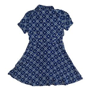 Free People Blue White Geometric Boho Mini Day Dress Button Up Size 0