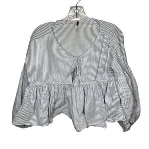 Free People Blue White Striped Peasant Boho Top S Balloon Sleeve Cotton
