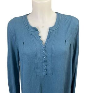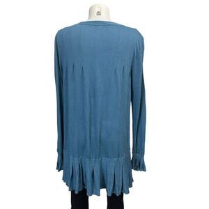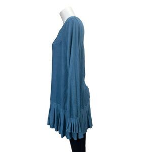 Free People Blue Your Girl Longseeve Knit Tunic Buttoned Ruffled Hem sz M