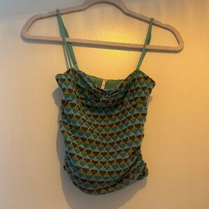 Chic camisole with a vibrant pattern. Features blue and green hues. Ideal for casual wear.